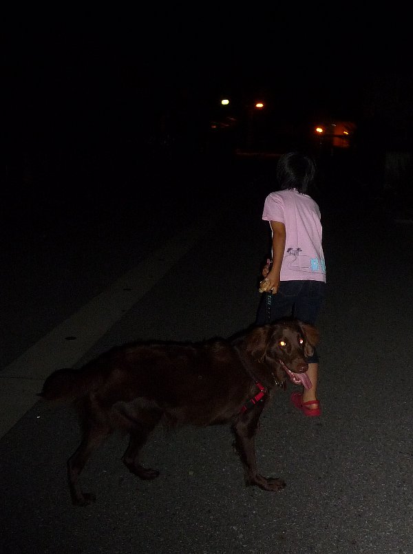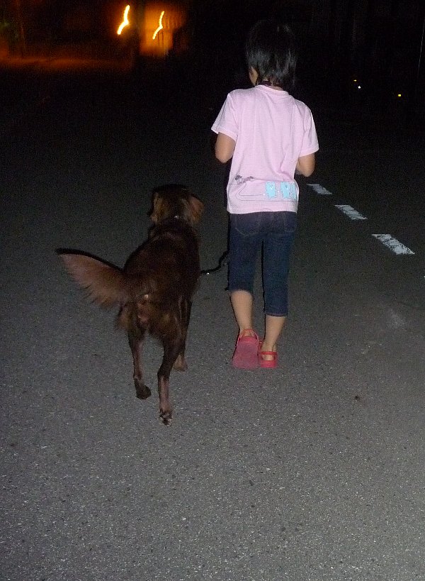 ねえちゃんも一緒に散歩です。珍しくねえちゃんがカヤを持ってくれました。