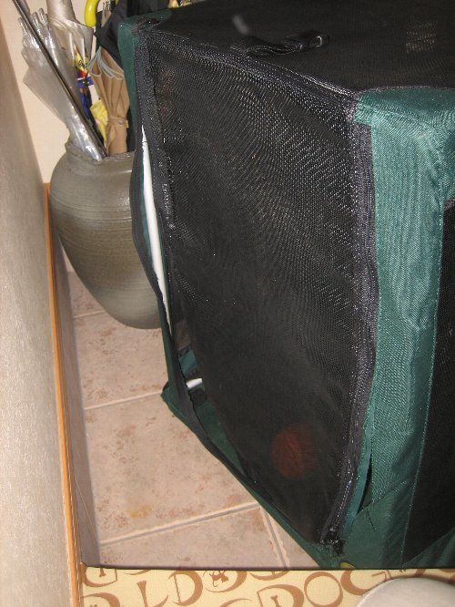 で、多分出るのは目に見えてるけど玄関でクレートに入っていただきます。