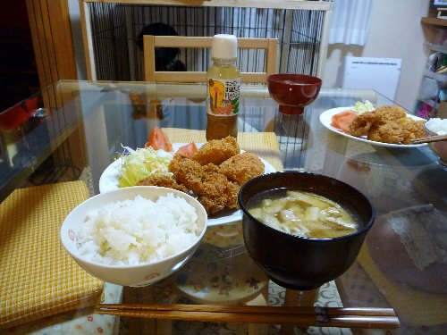 他のおかずを作るのもめんどくさいんで今日はミックスフライ定食としました。