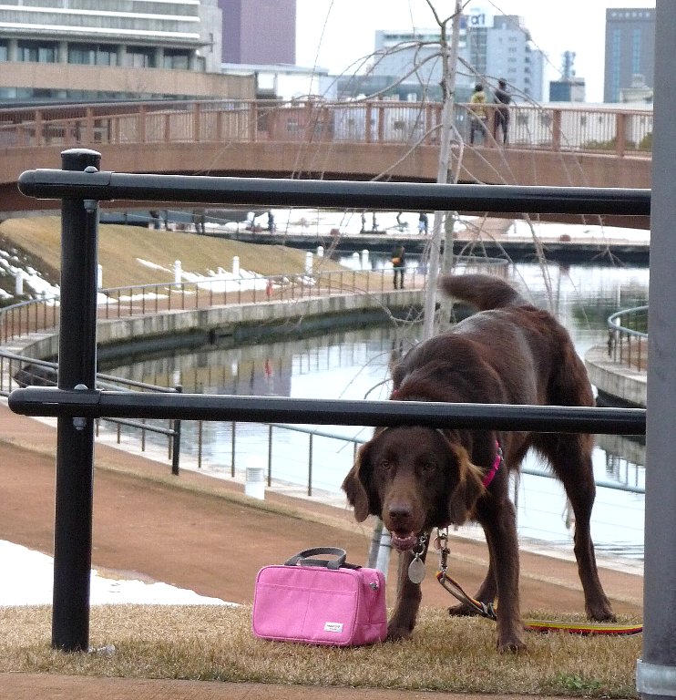 その後遅めの昼ご飯を済ませて凜パパからだらだらいい加減にしなさい命令が出てお着替えして凜カヤのお散歩へ環水公園へ。