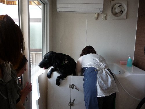 スタッフのお姉さんと二人がかりで嫌がる凜をセルフシャンプーの浴槽へ。