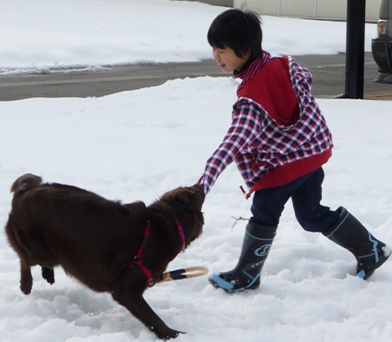 後ろのほうで雪合戦が始まってる、かぁさんにあてないでよぉ~!