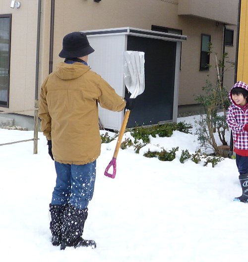 パパ雪玉じゃなくってスコップの雪投げるまねするしねえちゃんに大うけ(^m^;)