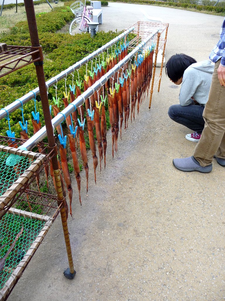路肩や臨時駐車場に止めてる人、そしてそれでも止めきれなくってかなり離れたところの漁港に止めてシャトルバスで、我が家は運よく臨時駐車場に止められました(^^;)