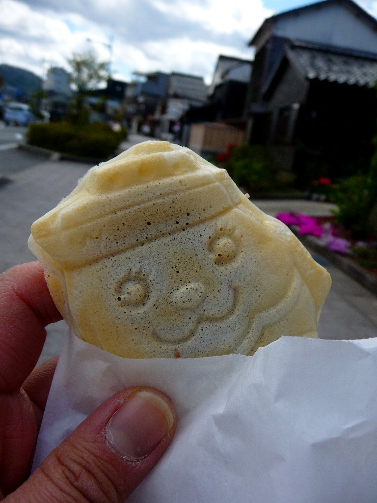朝市通りに行く前に歩き出してすぐまりん焼きってのを見つけてこれは食べとかないとって事で買いに行ったらつくりおきはしてないけど5分ほどで出来ますよと焼いてらうことに。