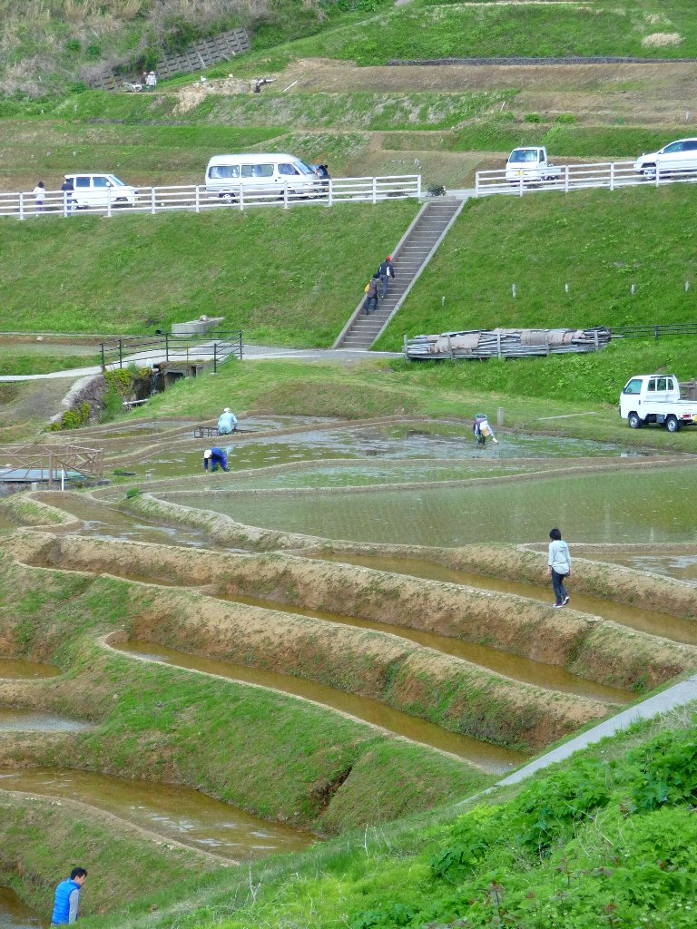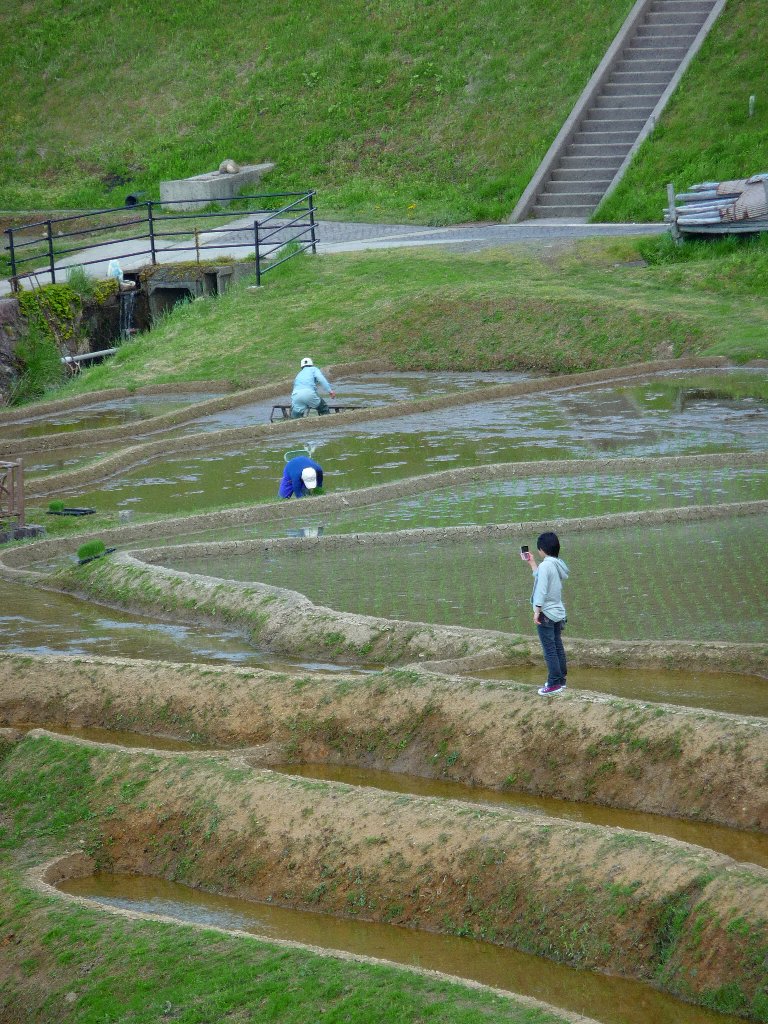 姉ちゃん畦に入り込んで田植えしてる方々を見学、
