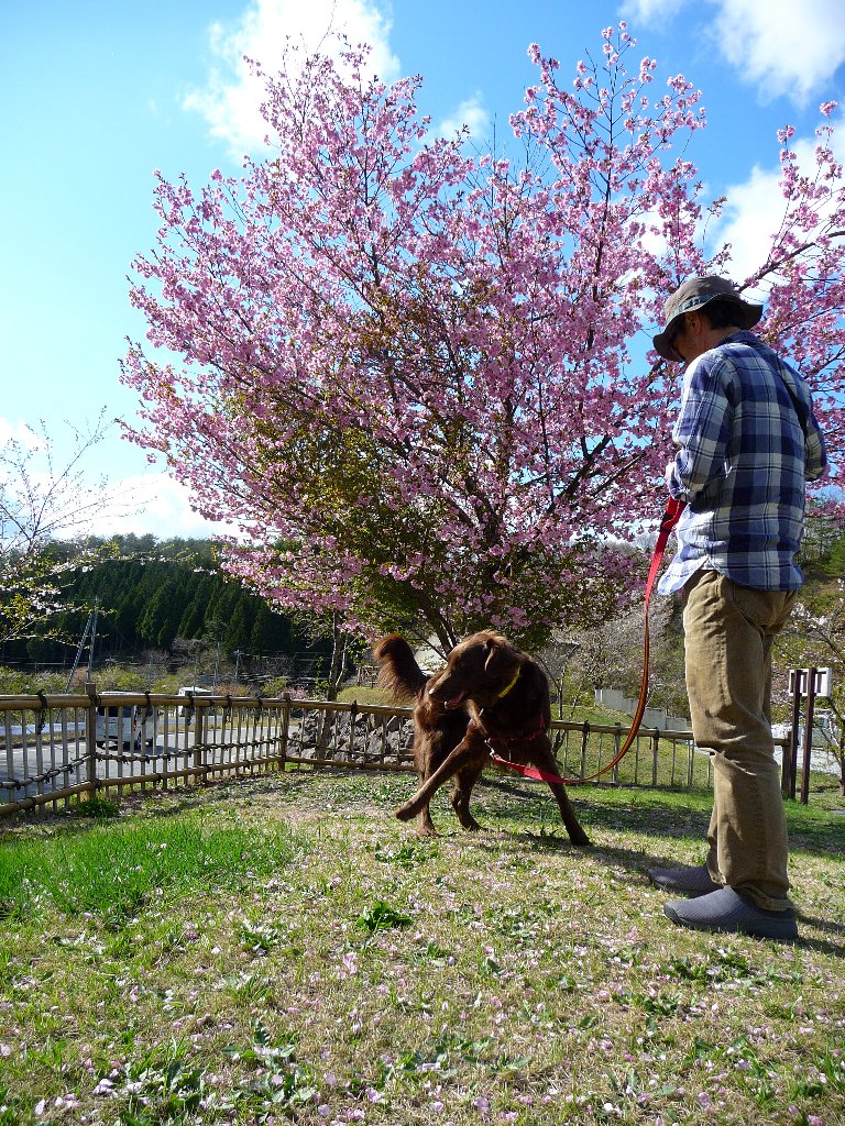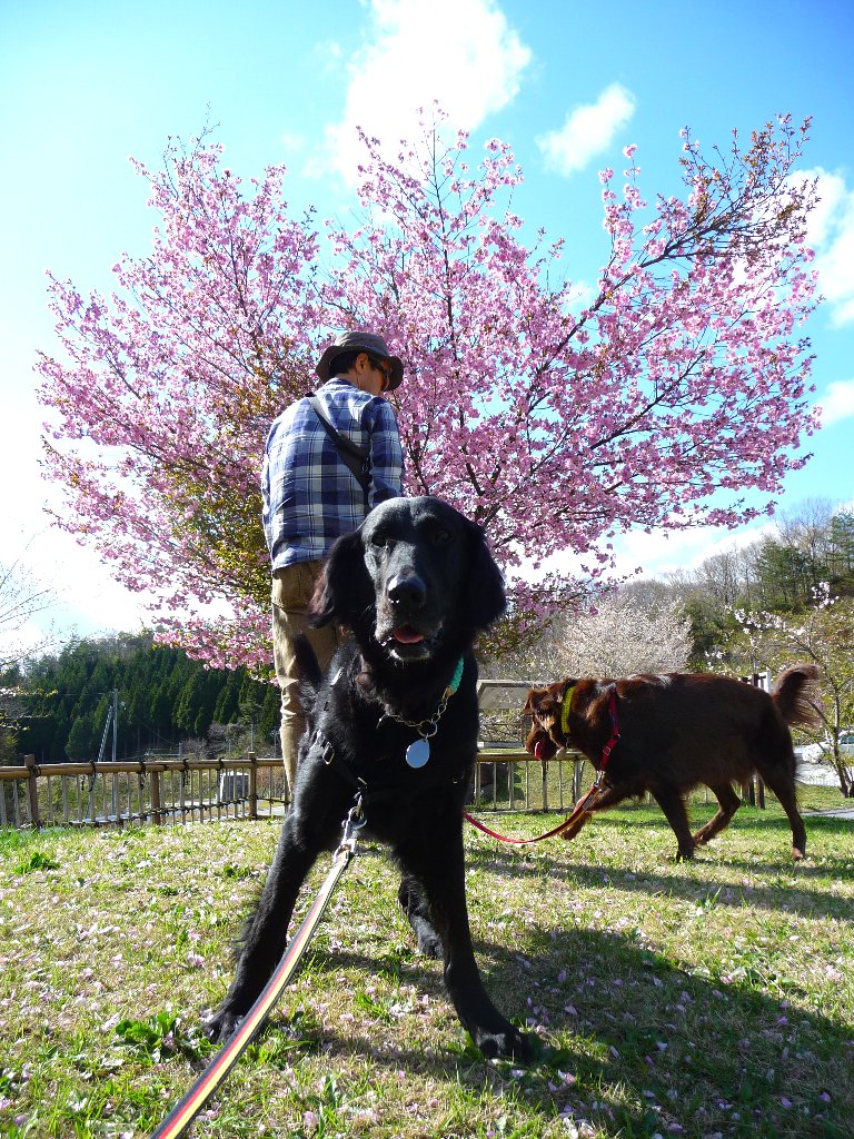 そしてこっちもなかなか外に出る機会のない凜とカヤ(同じなかなかでも意味が違うやね ^^;)、のと里山海道に戻る道すがら見つけた道の駅桜峠でワンコがいなさそうなのを確認してチッコタイム!