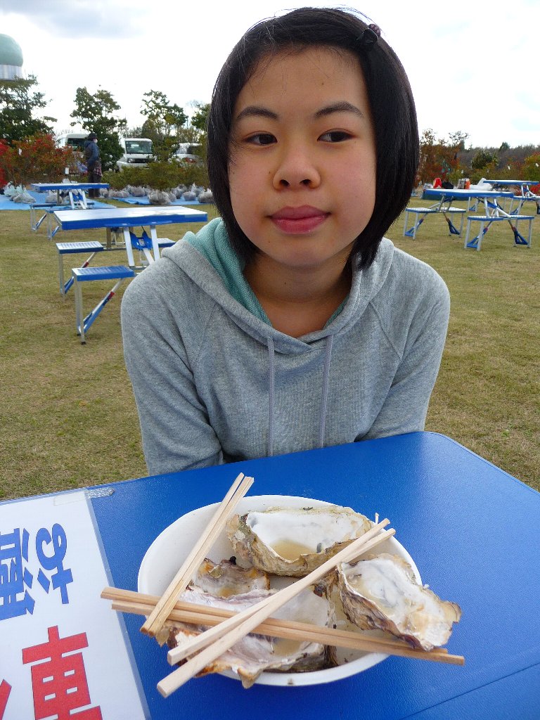 したら芝生広場で盆栽イベント?そこに出てたお店で穴水の牡蠣の炭火焼が売ってたの、これぞザ・能登!食べとかなきゃでしょ(^(00)^)