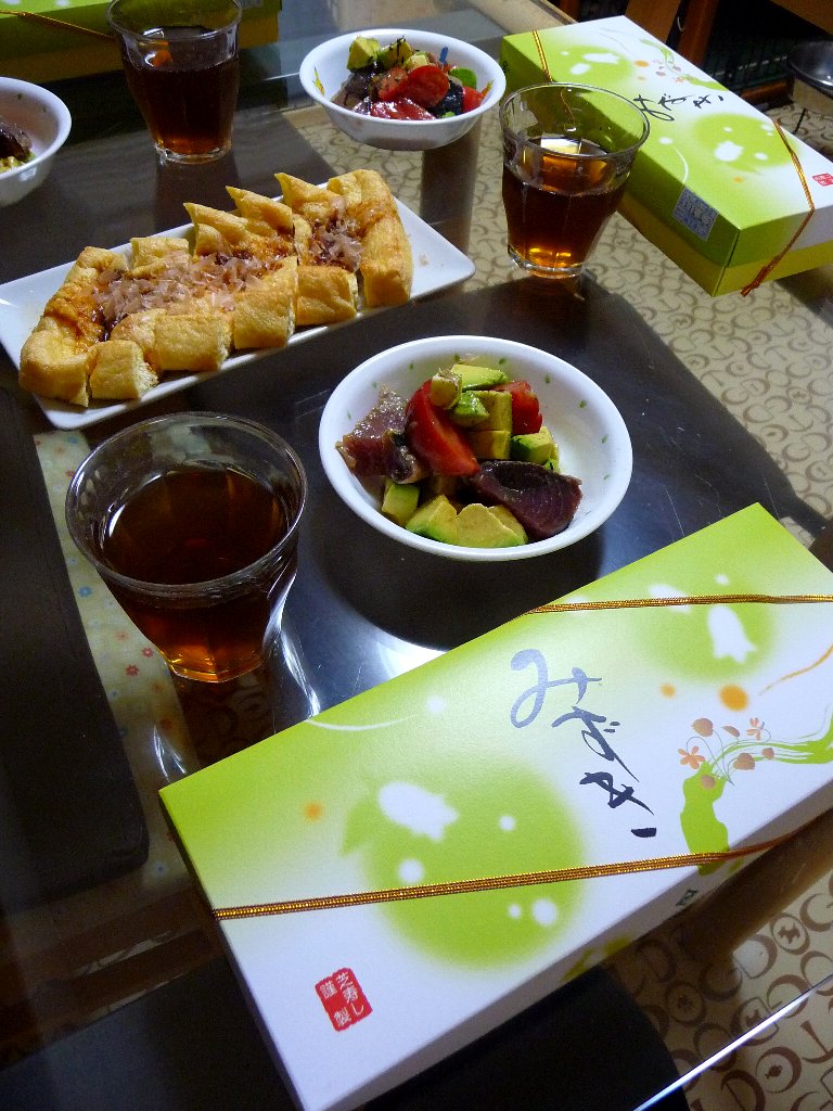 今日までに使わなきゃな鰹のたたきと油揚げがあったからおかずをチャチャッと追加!