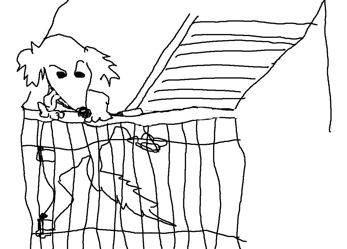 で、お留守番してた姉ちゃん、久々の画伯の登場です。