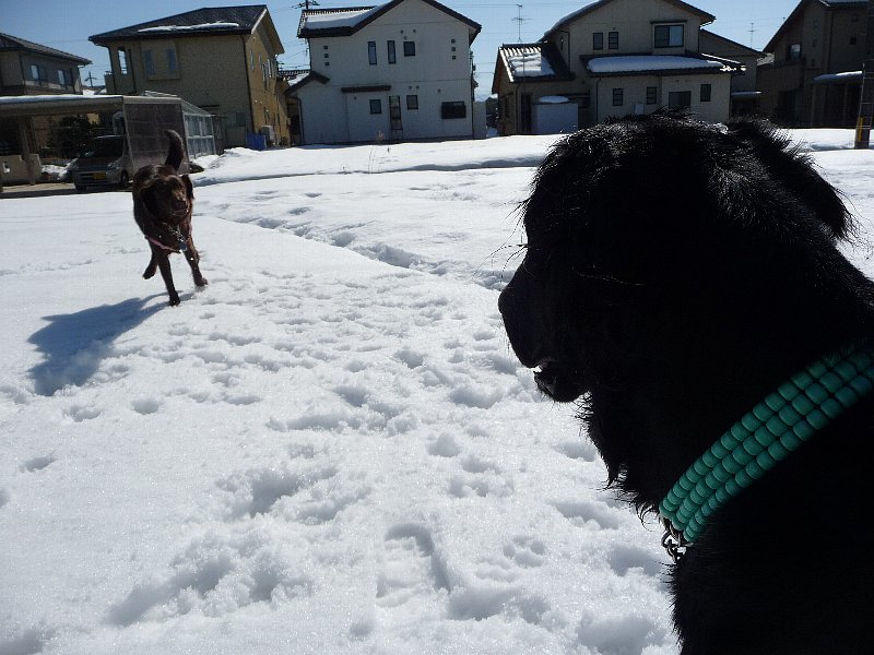 こっちは空き地は雪だまりがあるけど道はきれいで理想的な残雪状況よん。