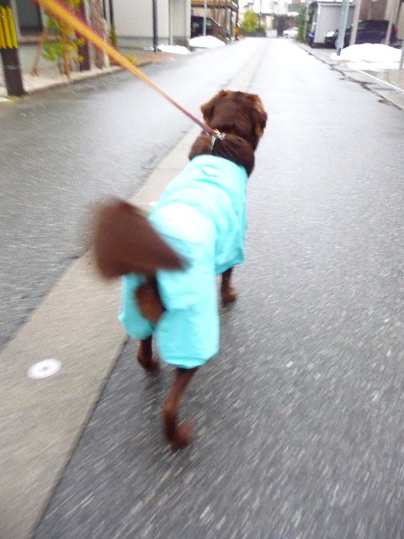んでおうち戻って、朝合羽拒否してお散歩連れてってもらえなかったカヤさん、