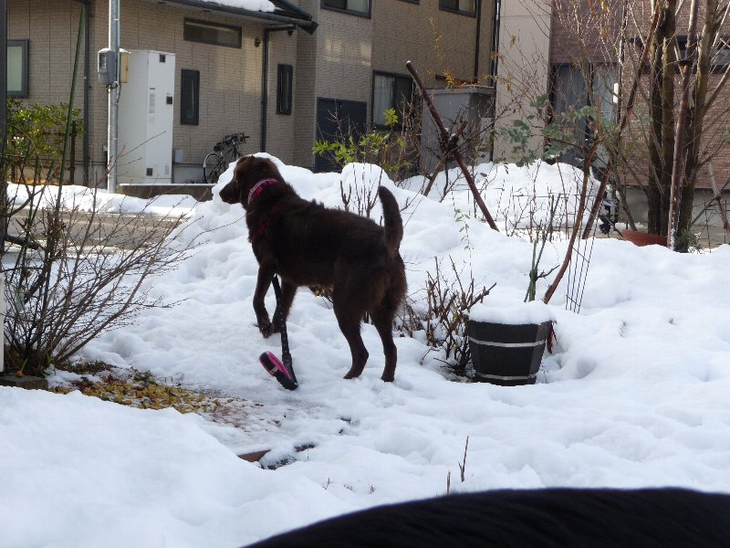 雪道を滑らないようにと緊張して歩いたんでモモの付け根がものすごく痛くなっちゃったよぉ~!