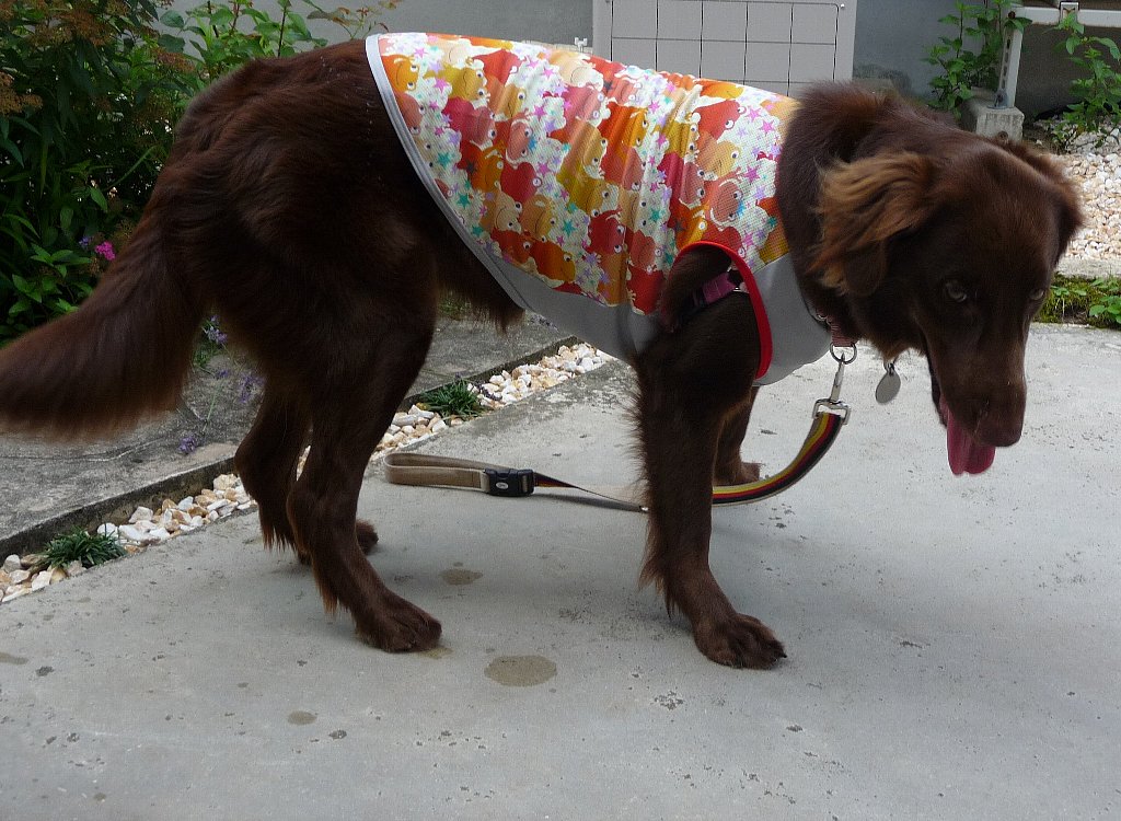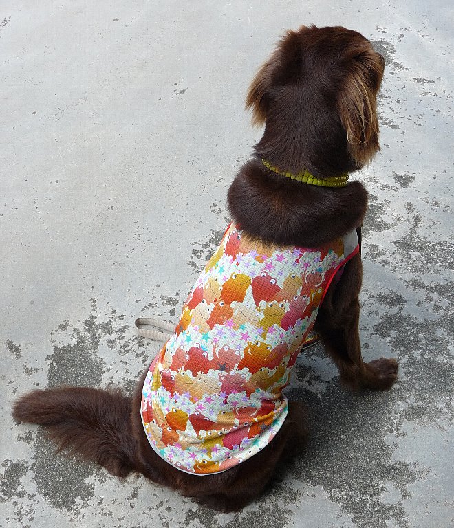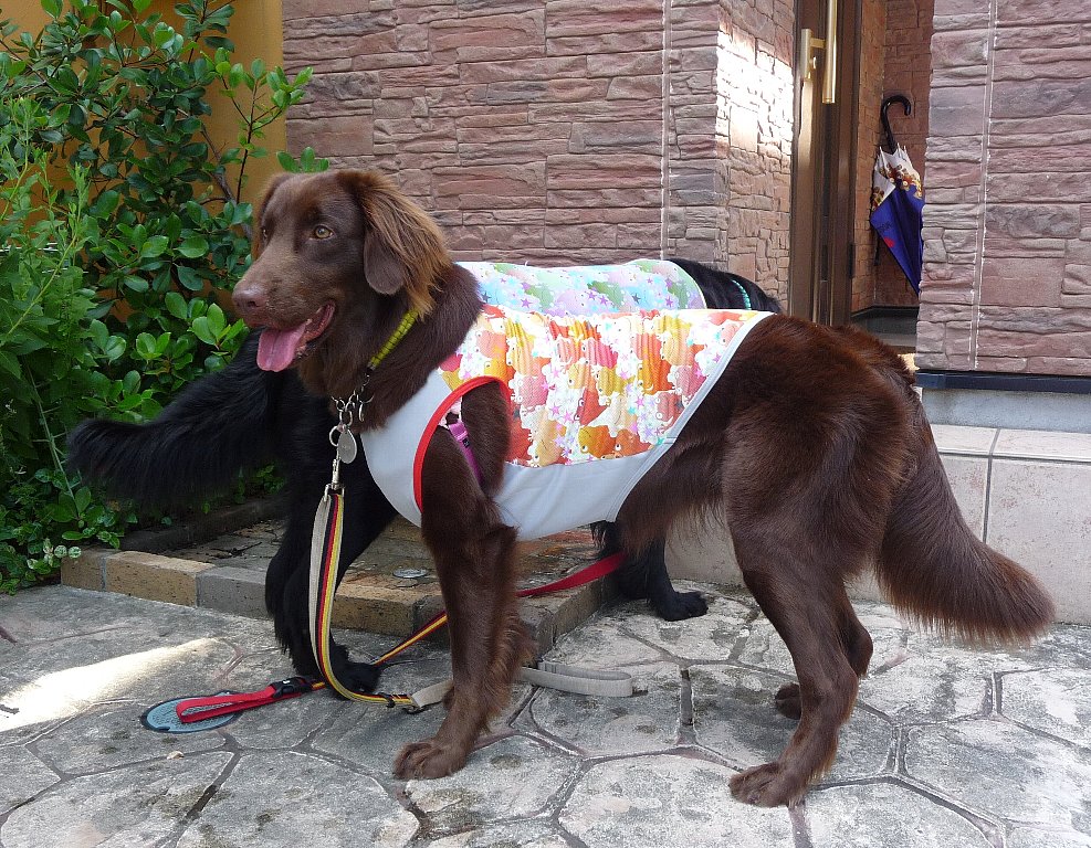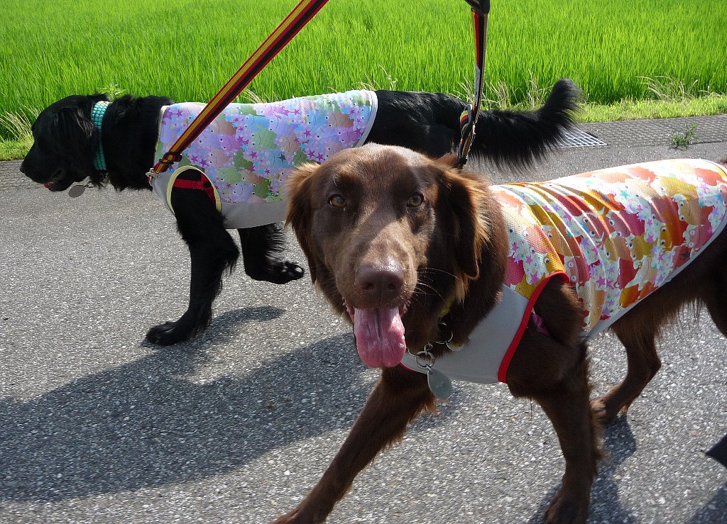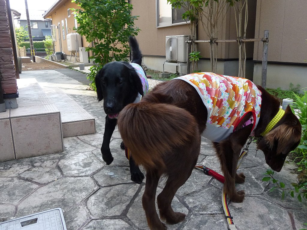 そうそうオピタノクールウェア、昨日暑かったんでお仕事行く前のお散歩で着せてみたんだけどね(--;)