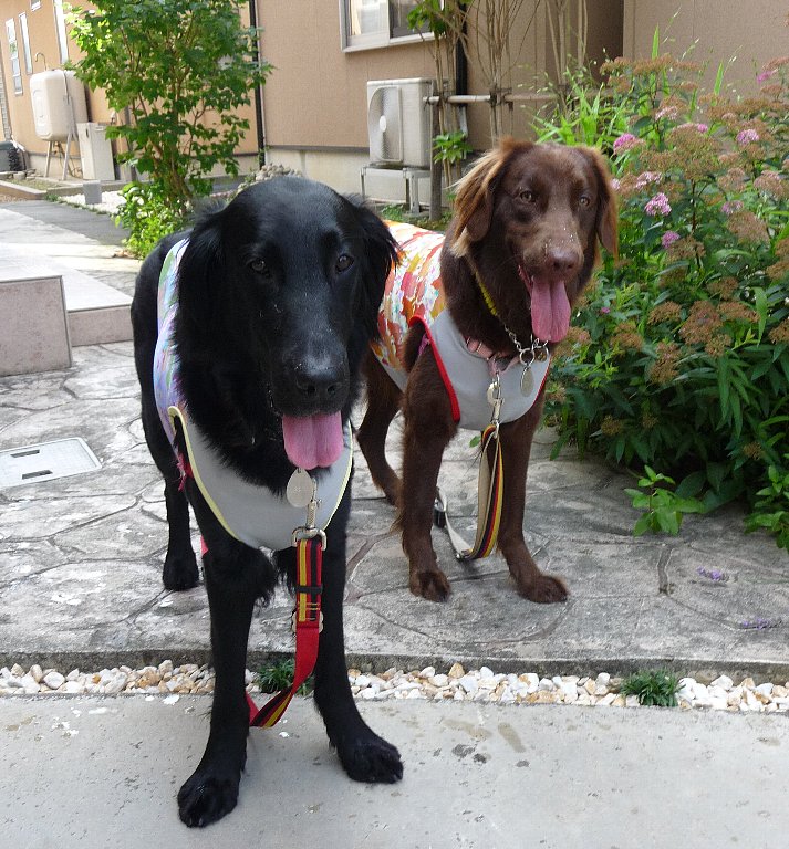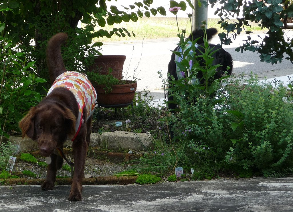 ものの数十秒で捕獲はしたものの、そんな元気有余りすぎるんなら朝のお散歩は少し暑くったってオピタノクールウェア着せちゃダメじゃない!かぁさんお仕事遅れちゃうよぉ~!!