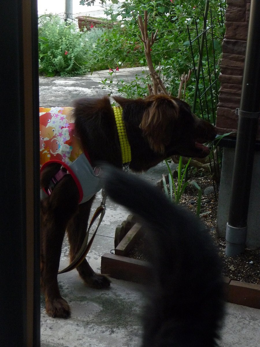 いつも夜散の後うちのせどに廻って裏のおうちの広いお庭方向をじっと見てたカヤ、ほんと毎日見に行ってたんだけどついに走ってやったでごじゃりましゅる♪って感じ?