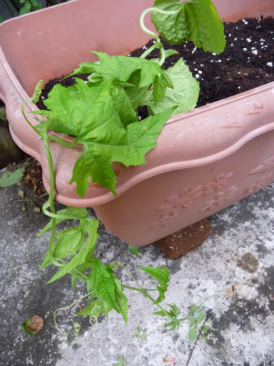 凜パパもねえちゃんもあんまりゴーヤは好んで食べないので食べる事はあんまり考えなくってもと半額で売ってたゴーやの苗を購入(・・)b