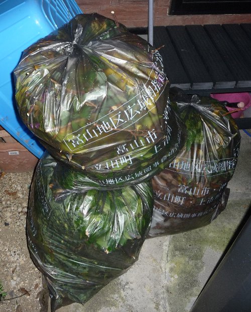 木々をばっさり切って細かくしてごみ袋詰め、あんがい時間のかかる作業なんだよなぁ~。