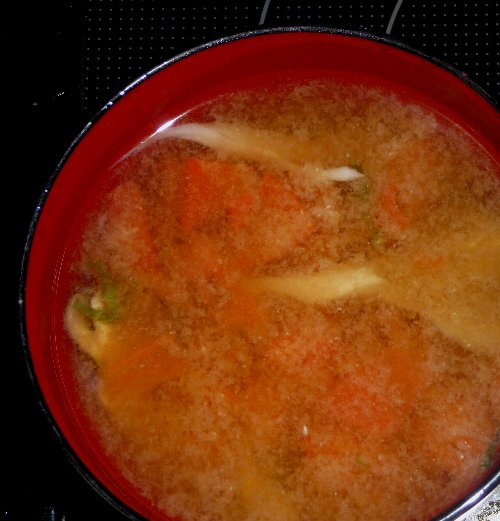 と、ここまではよかったんだけど今日病院で見た雑誌に子どもに人気の洋風味噌汁ってトマトを入れた味噌汁が載ってたんで作ってみたけど・・・姉ちゃんまずいって残しちゃった(--;)