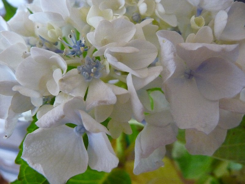 この間近所の方にいただいたアジサイ、真っ白だったのが碧くなってきました、びっくり!