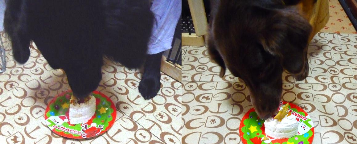 んで、こっちはいつものアトリエワフさんで買ったワンコ用のクリスマスケーキ、