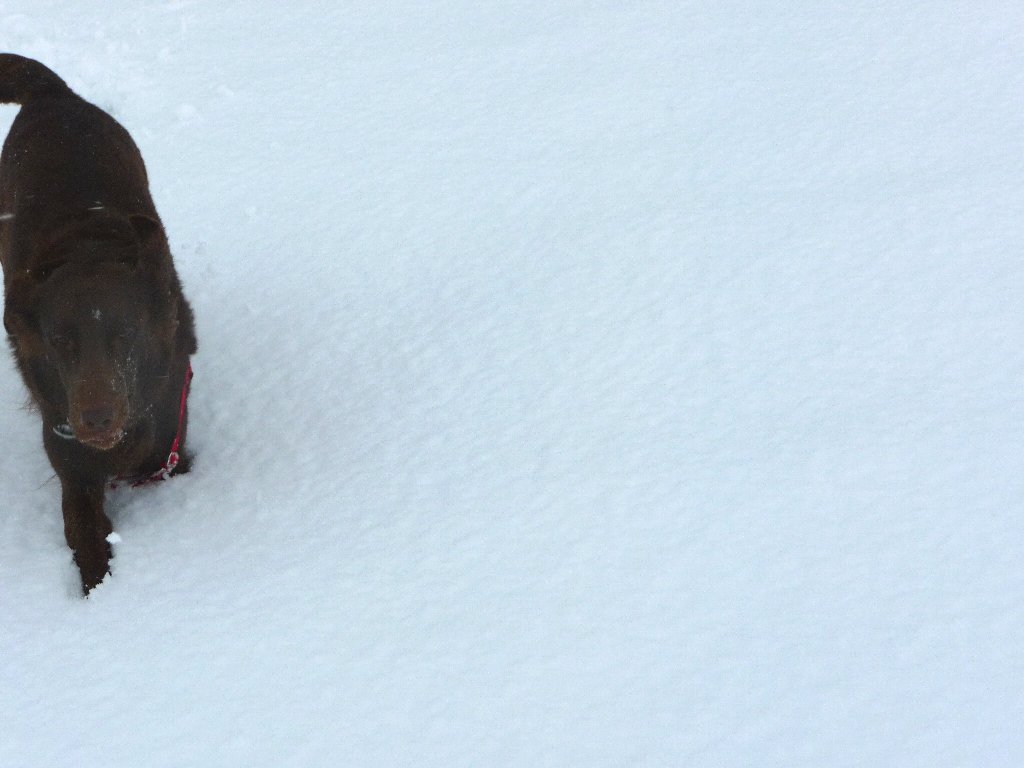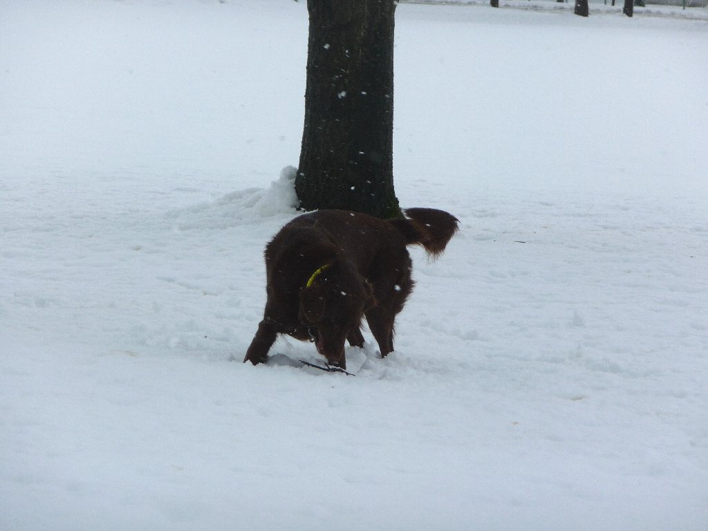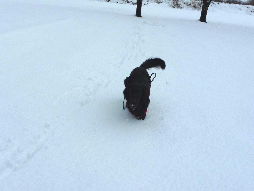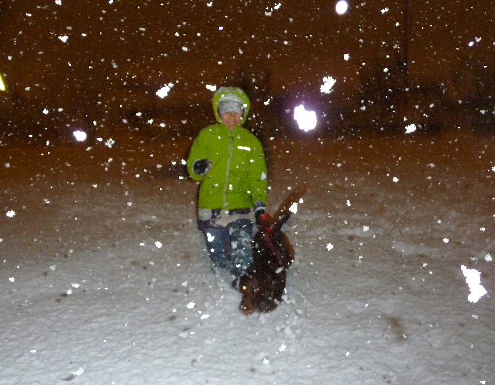夜散、既に公園の雪は姉ちゃんの膝くらい?カヤの足は全部隠れちゃうくらいです、その後も懇々と降り続いてます(--;)