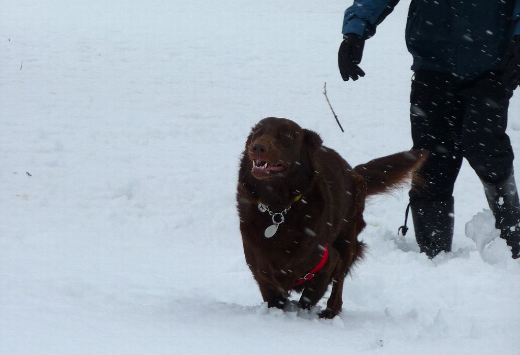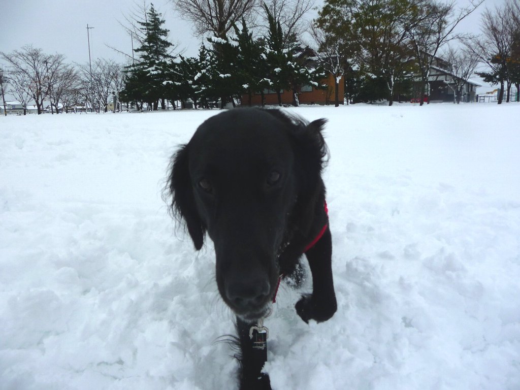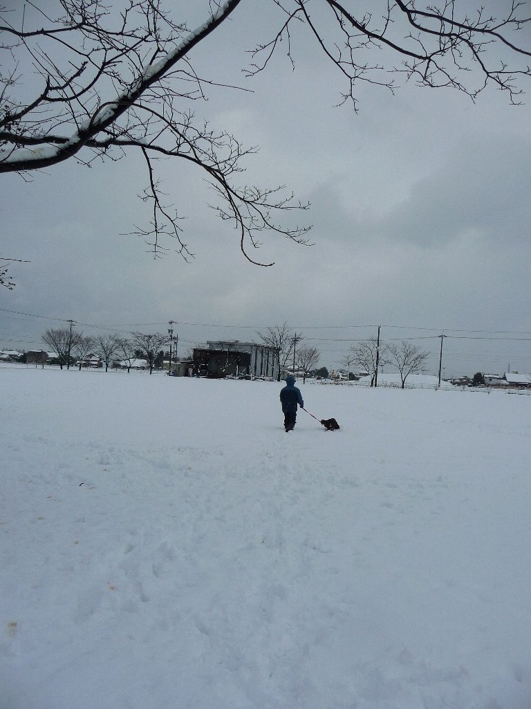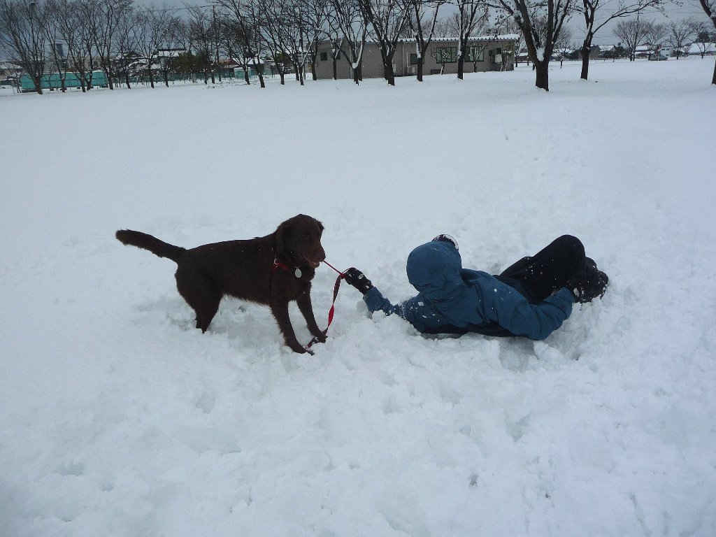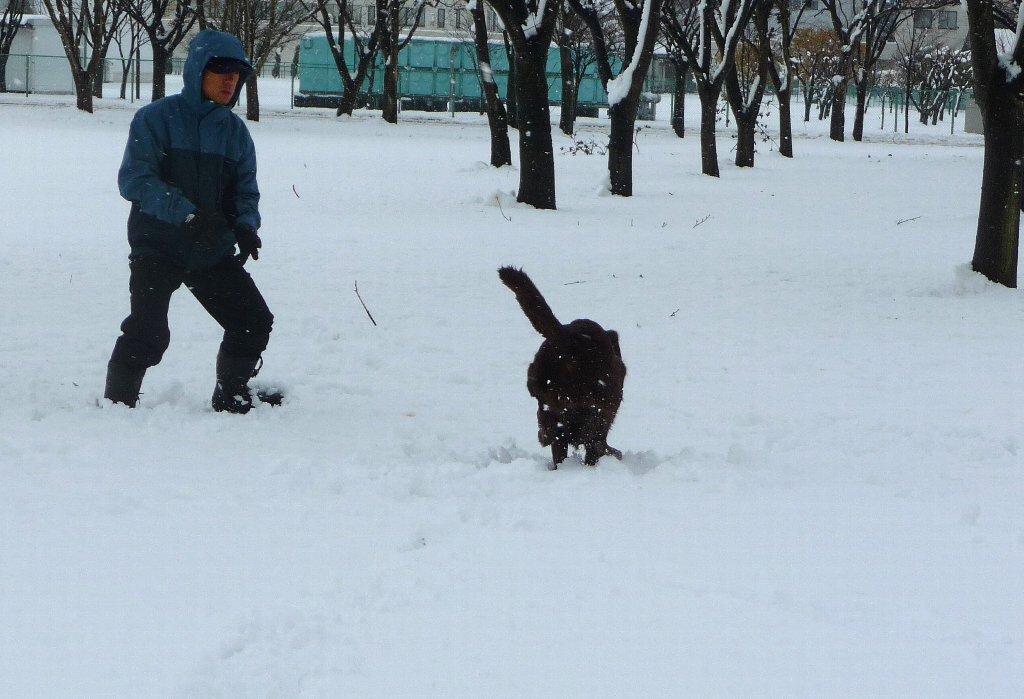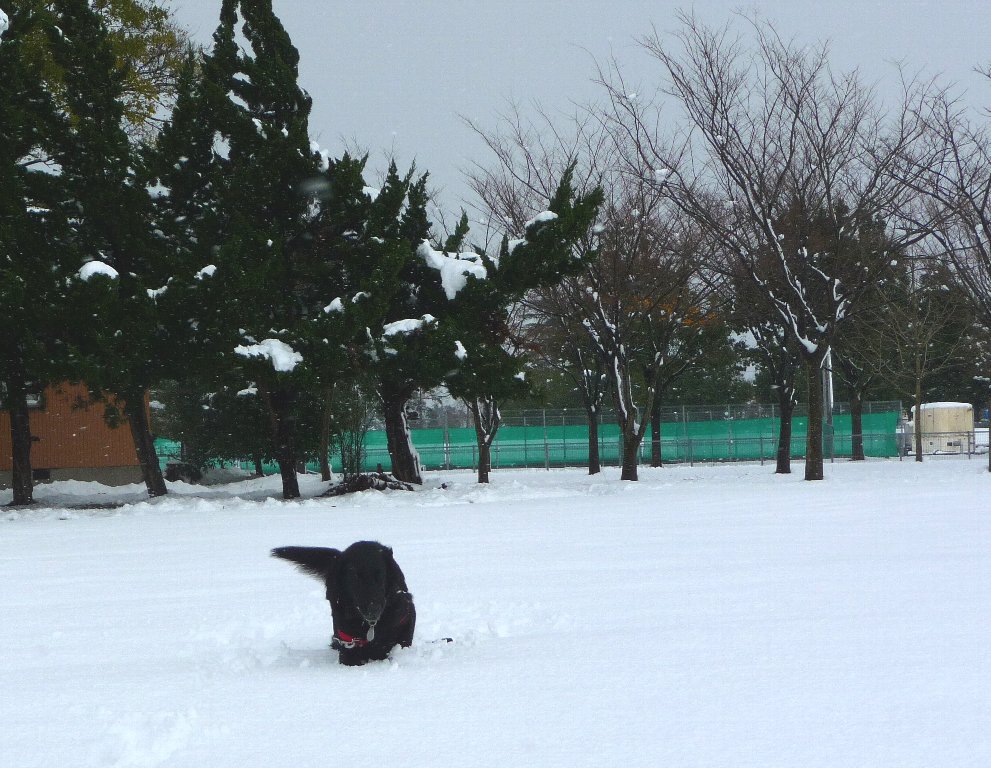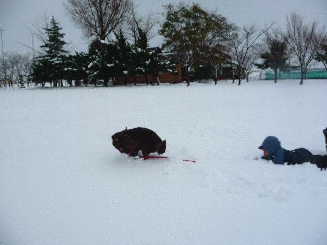 15分ほど走り回ったり雪玉投げたりして遊んでたんだけどまた降りそうな空になってきたんで、ってか気づくと凜パパがカヤを連れて帰ろうとしてて(^^;)