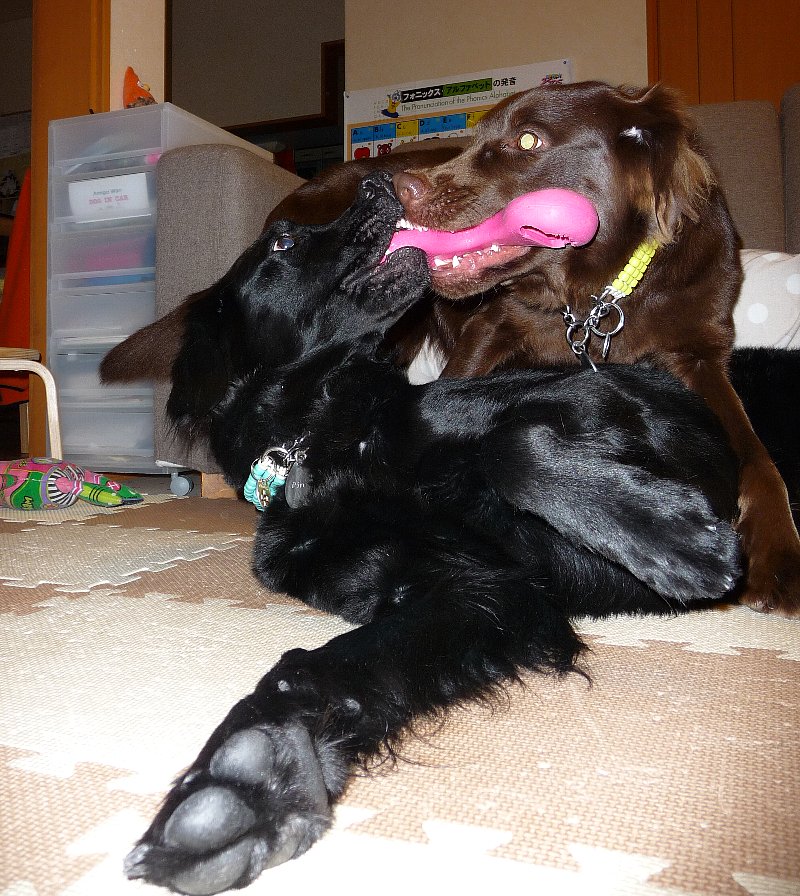 凜が来て1年目までは育児日記をつけていたので、フラットの子犬を飼おうと思われた方の何かのお役に立てば・・・・・キットうちの子はまだマシと安心されるはず(^皿^;)
