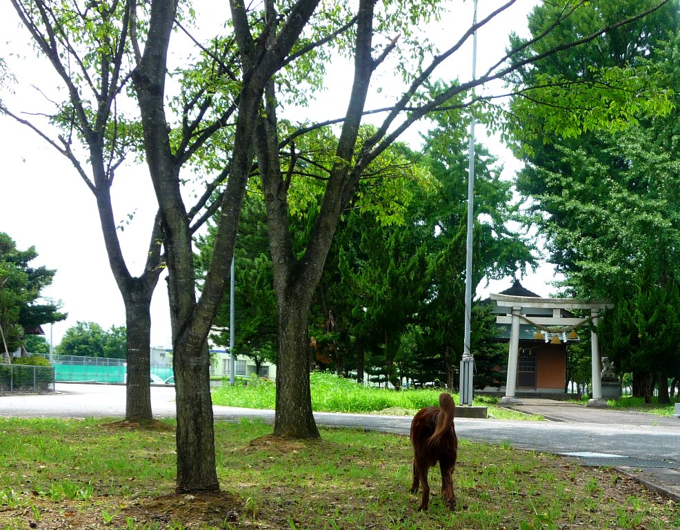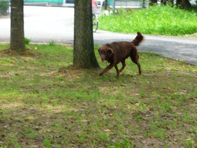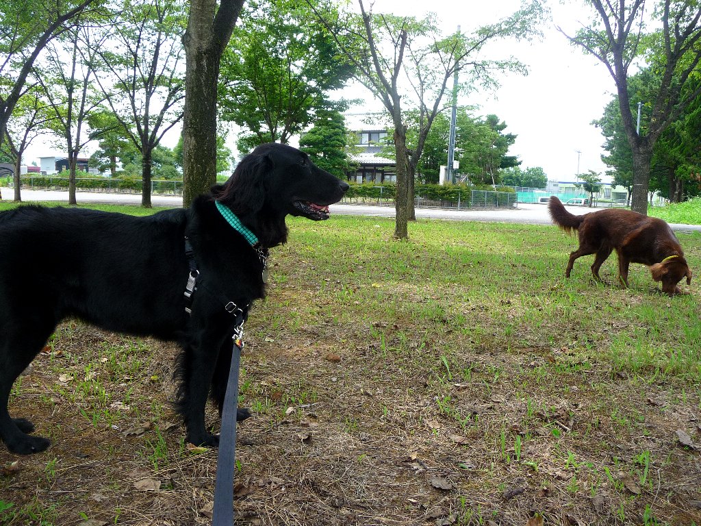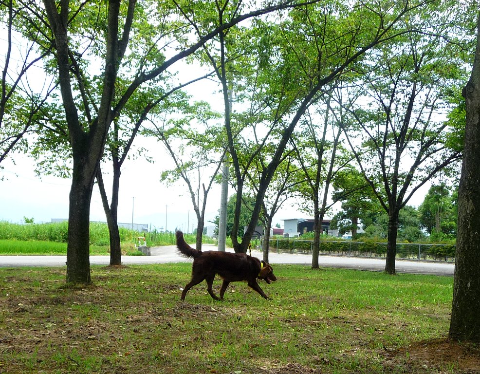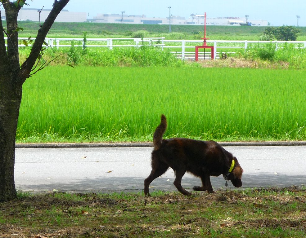 途中お買い物を済ませ、いつもは朝散の後は夕散なんだけどおうちに戻る前にチッコしてって夕散はまだ暑いししないでおこうかと帰りに裏の原っぱへ。