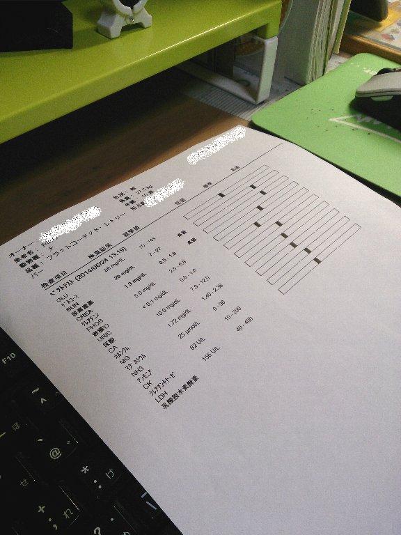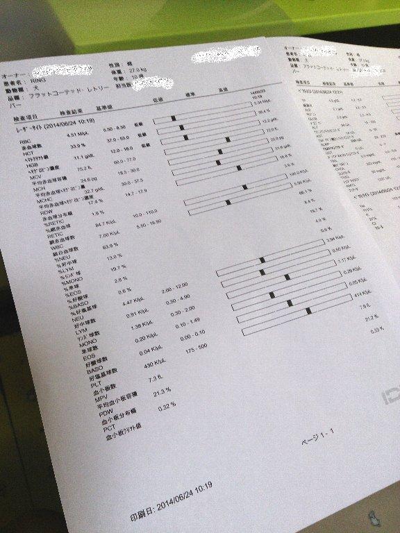 この赤血球の減少による貧血、癌のせいか、それとも腎不全からの貧血かどちらかは定かでないそうです。(子供の赤血球は相変わらず作っているのですが前回までよりも少し少なめ)