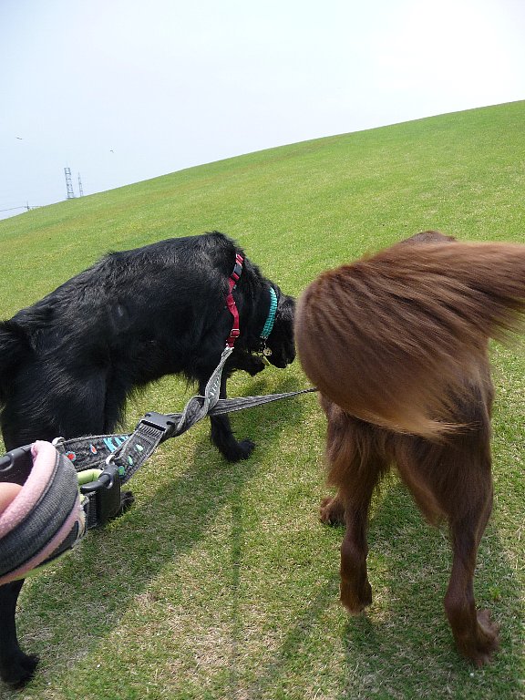 それにサッカーとかする場所だからね、万が一わんこが掘っちゃったりしてその穴に気づかなかったら選手が怪我する可能性もあるし、んこさんも取り漏らしって事もあるかもだしねぇ~、ここで放したくなってウズウズしちゃったらぐっと押さえてもうちょっと走って絵草海岸通りドックランヘ行くべし( ̄^ ̄)b