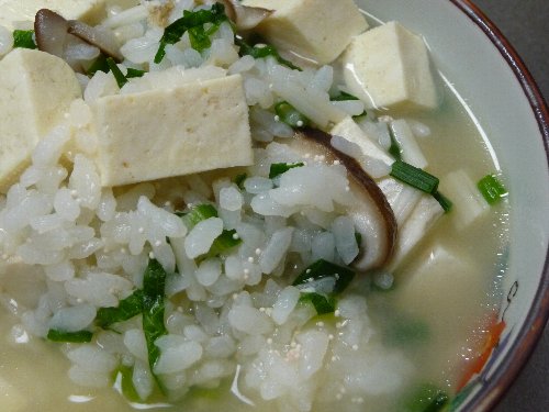 木綿豆腐と葱とシイタケとタラコを入れてみました。
