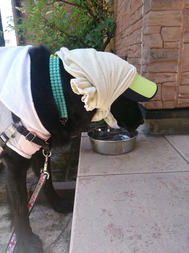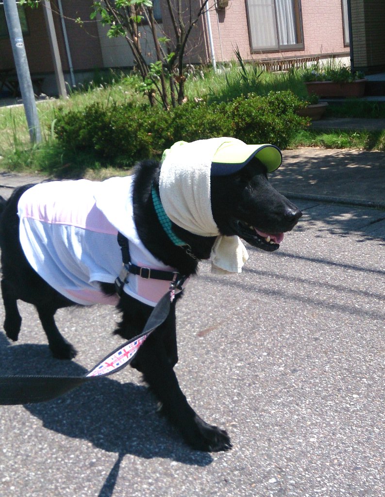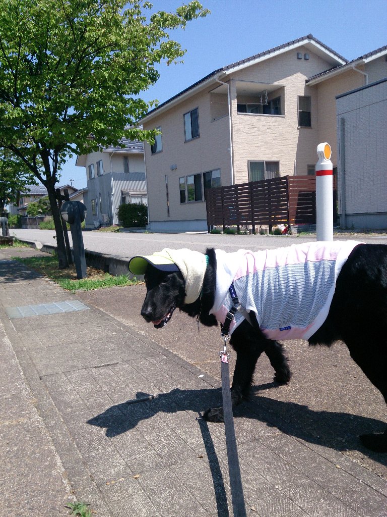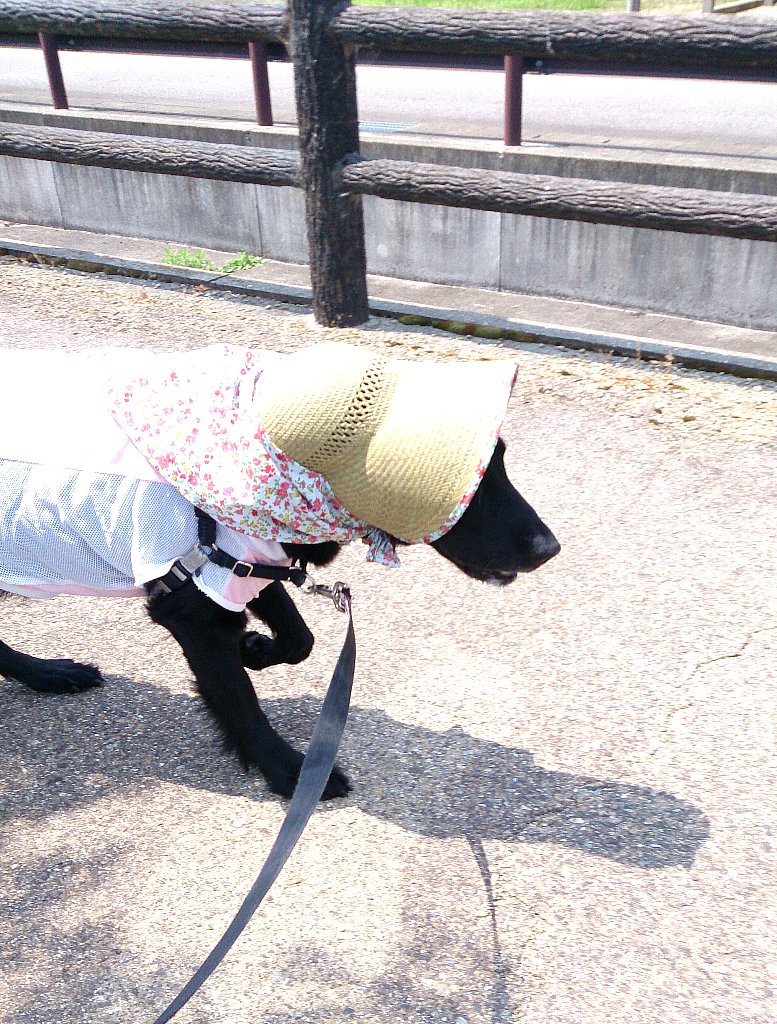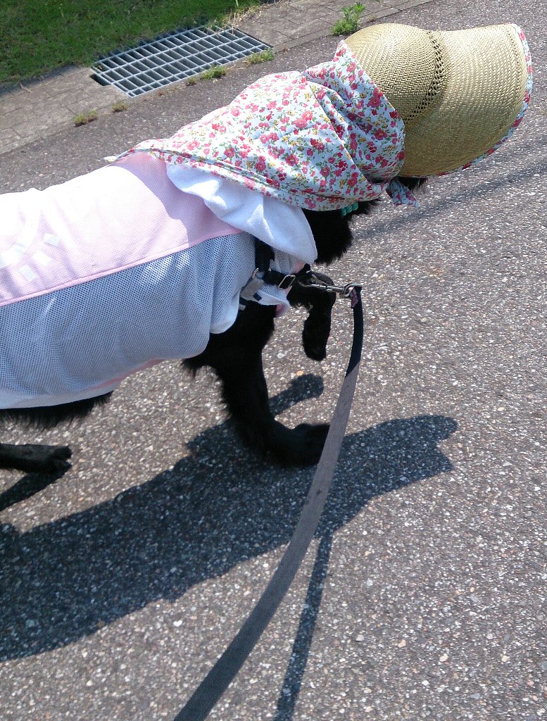 でも格段に楽なようでアワアワが激減、そしていいお顔でお散歩♪(楽なのと頭にかぶせられるのが嫌なのは相容れない凜の心の葛藤?)