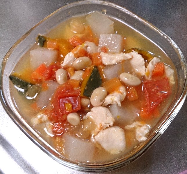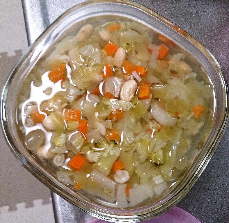 そして毎日肉類をプラスオンに入れてやってるのも消化の面で負担になったのかもって事で昨日と今日はお野菜とおまめ類だけにしてみたよ。