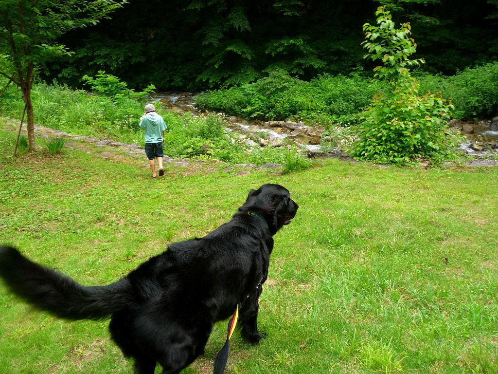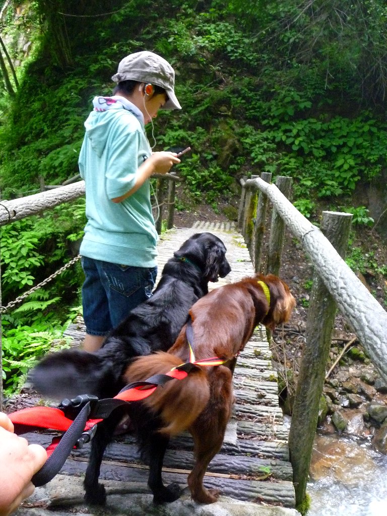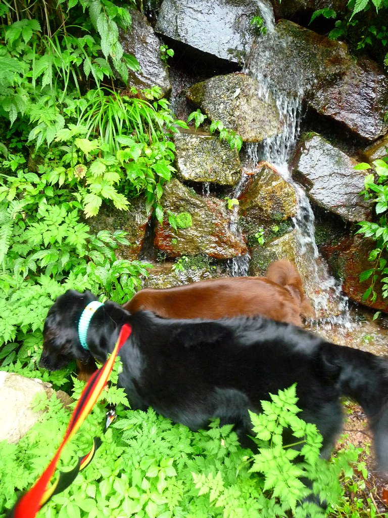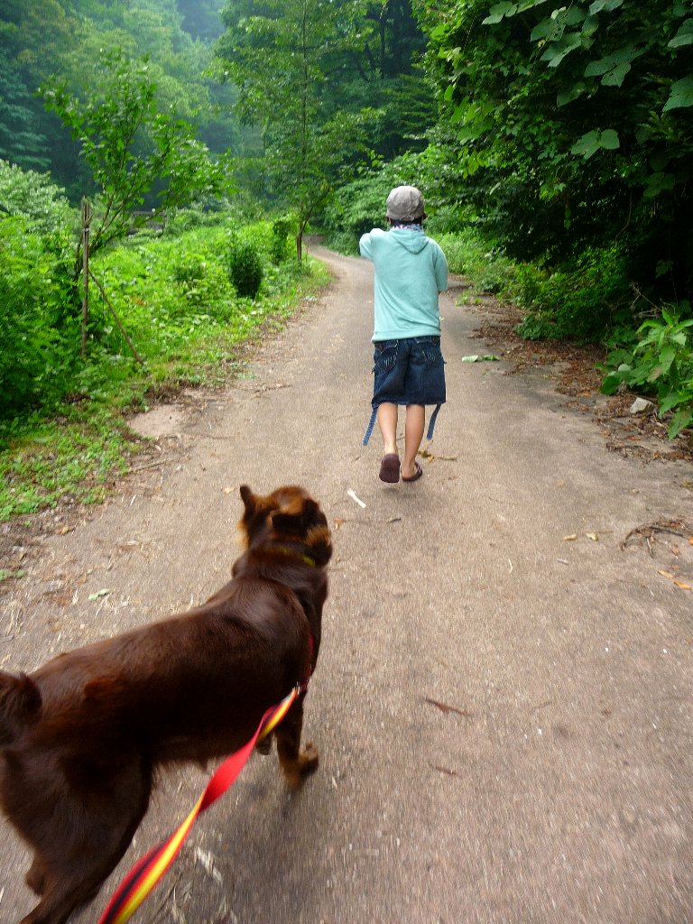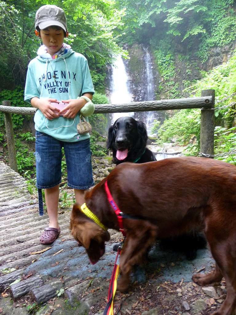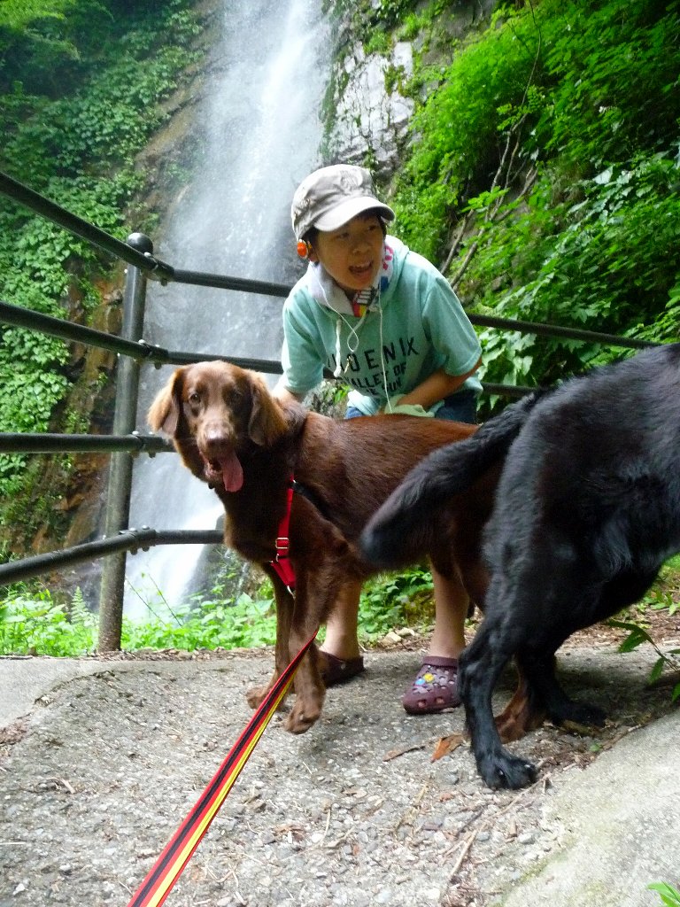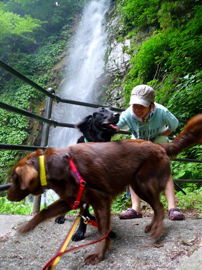 カヤを制御しながら実はさっきのとこの奥に階段があってもしかしたらそれを上って行ったら上のそうめんのところへ行くのかも・・・とおば様たちには言ってみたけど2ワンをつれてどれくらいの距離あるのかわかんなかったんで我が家は車で上に上がりますと言ってわかれました(^^;)