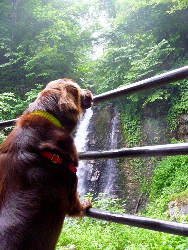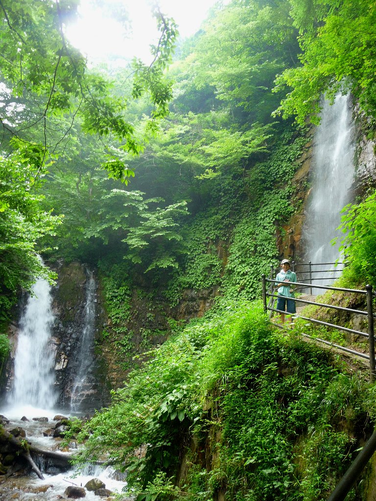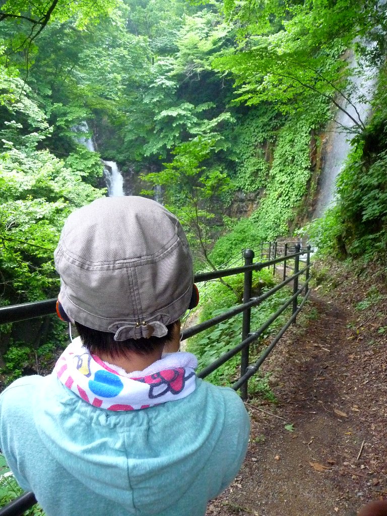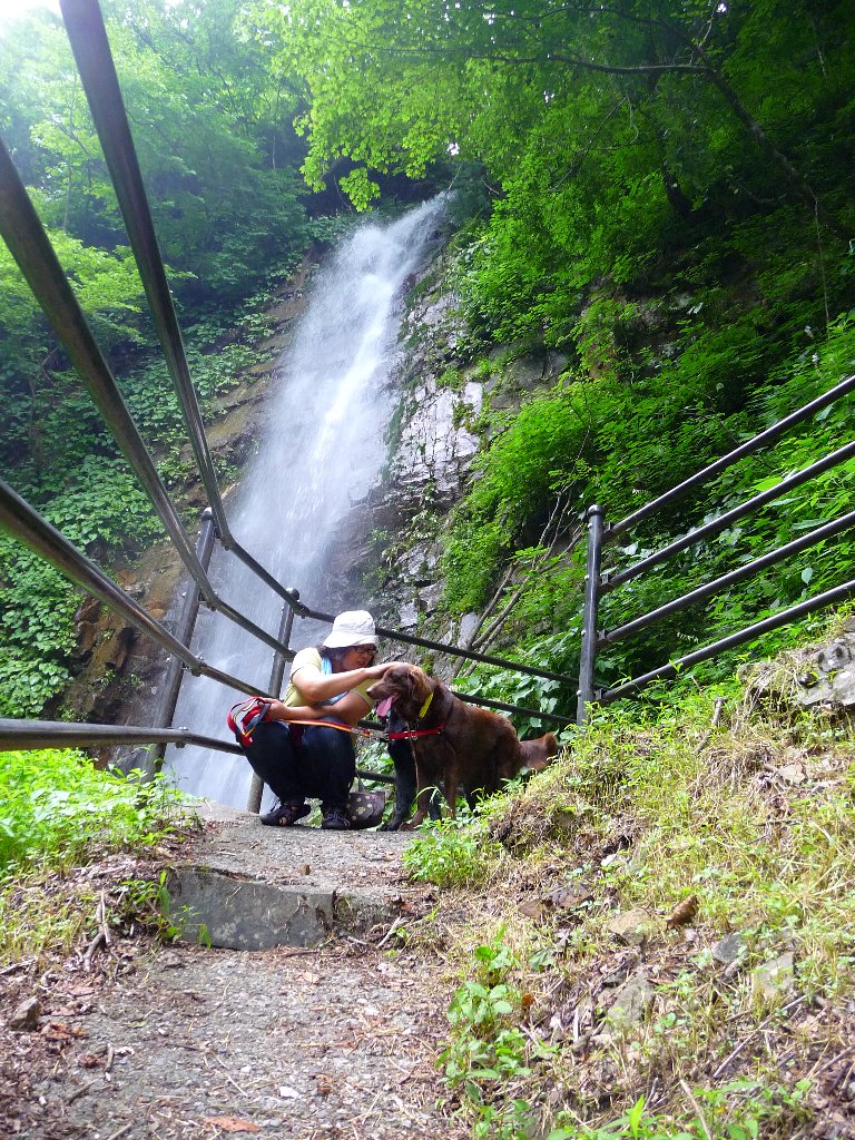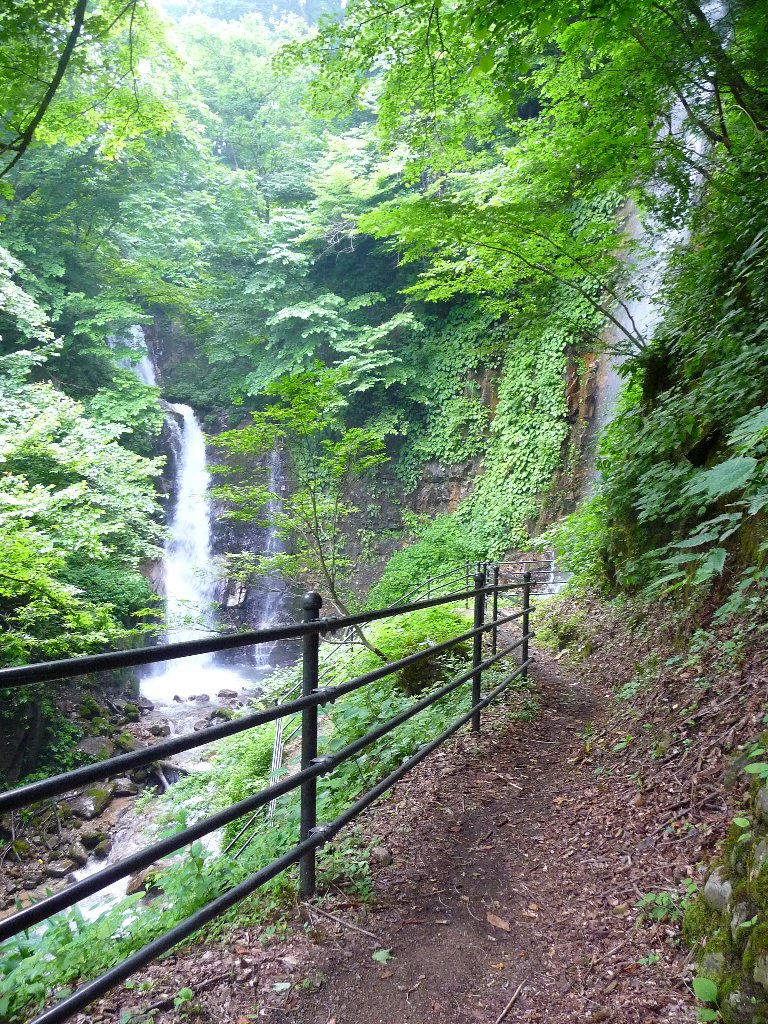 滝の水しぶきがミストのように全身に、気持ちいいです、何より称名滝みたいに駐車場から遠くない!(たとえ下から上がってきても ^。^;)