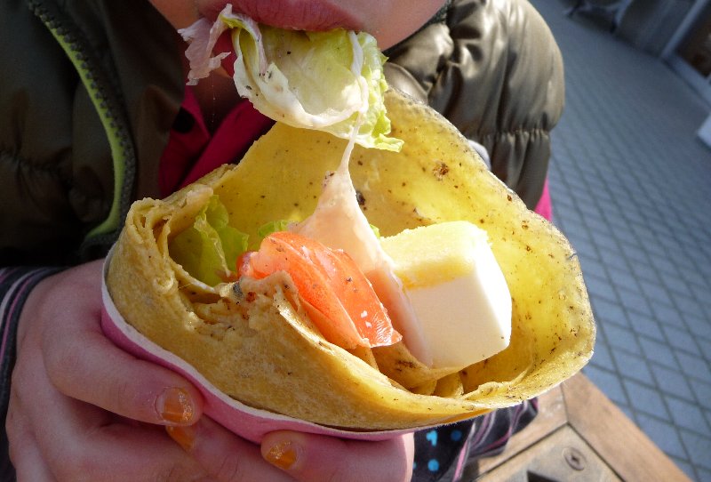 ねえちゃんはクレープがいいって事でバジルと生ハムにクリームチーズをトッピング。