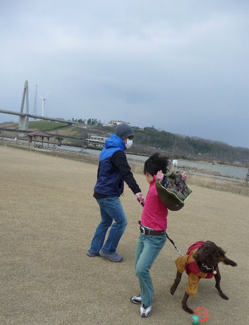 で、今日はこっち来たついでだしお天気もいいし、実はびぃちちゃんちが近くらしくってこの間ルーシーママがここで(多分)偶然びぃちちゃんに会えたって言ってたしもしかして会えないかなぁと・・・なら行く前にメールしとけって感じよねぇ~(^^;)でも思いついたのが外へ出てから、PCにはびぃちちゃんちのアドレスあるけどケータイには・・・なのでした。