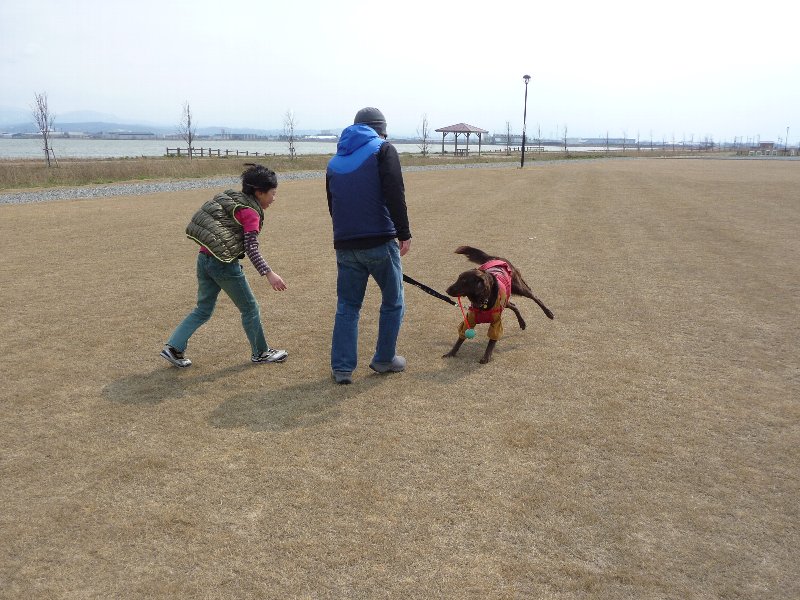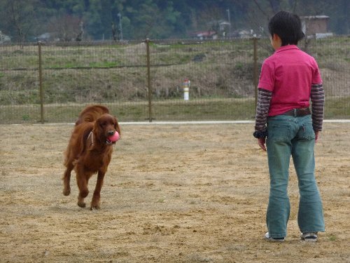 ボールを握ったらマメちゃんがまるでねえちゃんが飼い主のようにねえちゃんの言うことを聞いて延々ボール遊びが始まりました。