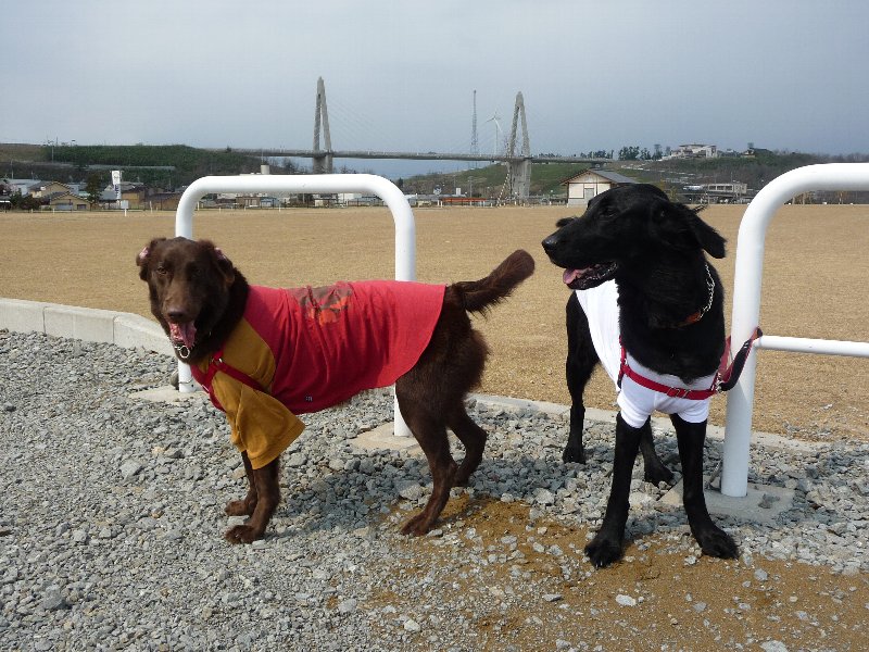 風が強くってさぶいので移動移動!でもその前に二人の写真とろぉよぉ!ちんとしてよ!!
