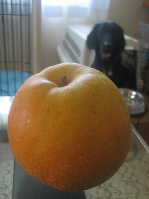 呉羽丘陵の梨が出回る前に我慢んできずに店頭で買った〇〇産の梨・・・すんません梨じゃないです私にとっては(--)買わなきゃよかった。