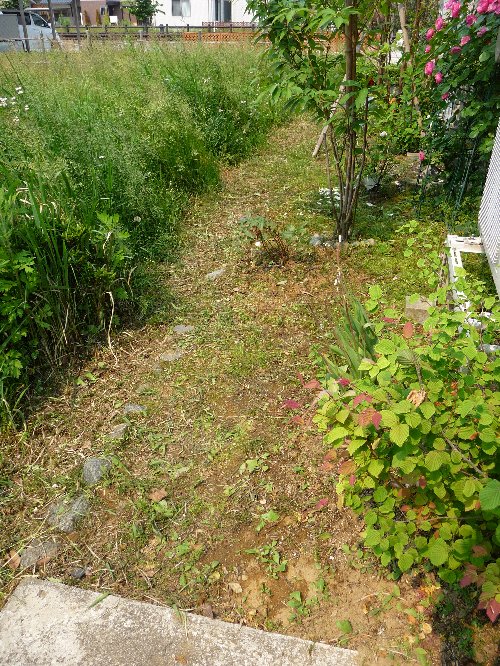 土曜日、chababaが姉ちゃんの相手してバスケもどきで遊んでる間に、凛パパ草ぼうぼうの北西面、草刈してくれたのよ。