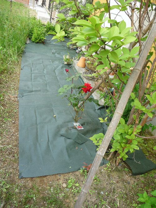 丁度中央部くらいのシャラの木まで防草シートをひいたよ。あと半分なんだけど・・・明日明後日ファボの特招会だし、明日はみよばぁちゃんの命日なんで墓参り行きたいし・・・折込・配布もしなきゃだし。