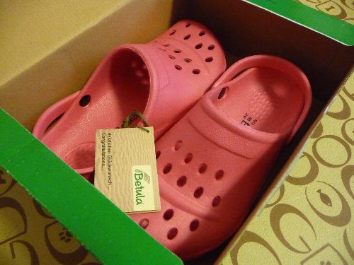 いい年してピンク?って凜パパに言われたけど、chababaの履けるサイズは赤とピンクとモカだけだったんだもの。