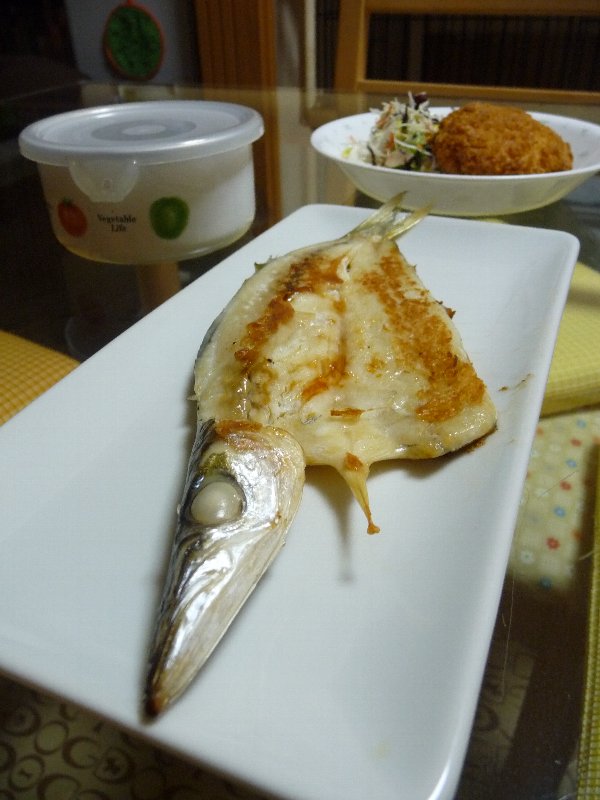 本日の夕飯は氷見産のかます(何故か金沢で買ったんだけど^。^;)、フライパンで焼いてみました。