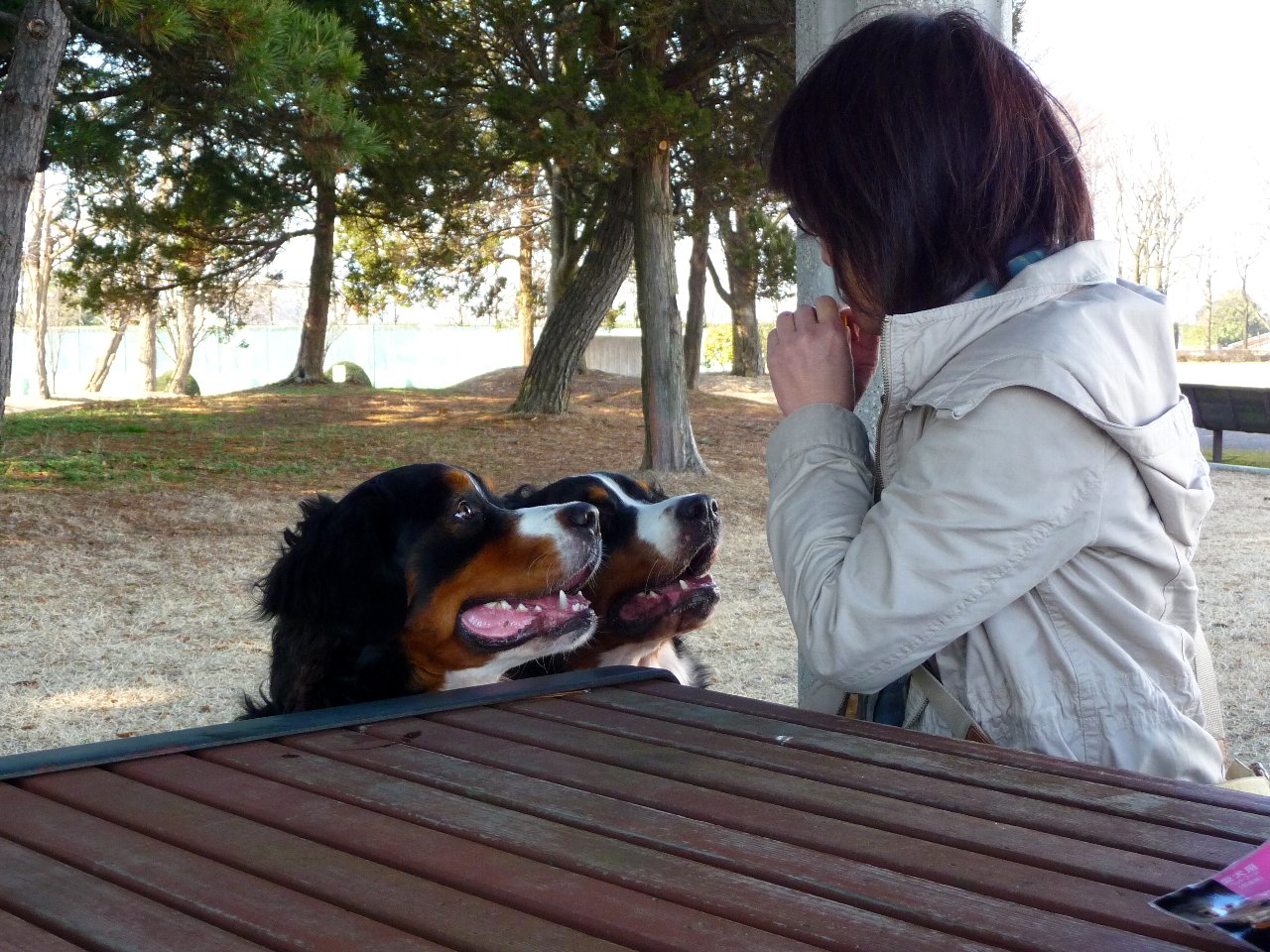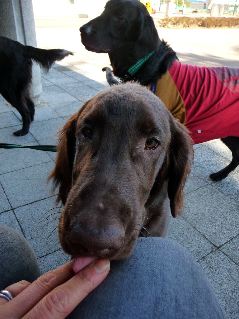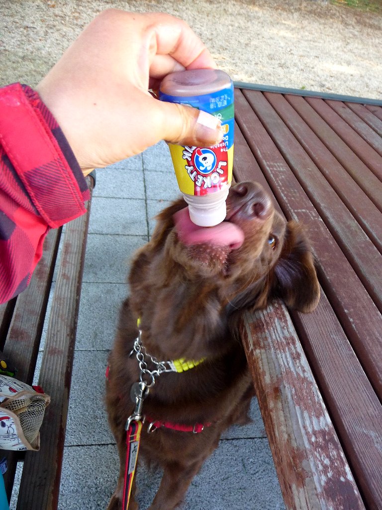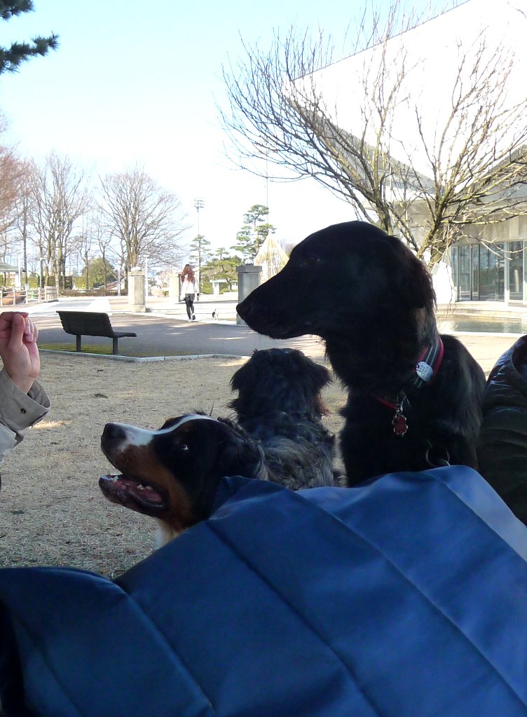 前に行った時はほとんど人がいなかったのに今日は高校生(?)が部活してたり沢山歩いてる方いたりワンコの散歩してる人も沢山いてなかなかデンジャラスな中いっせいに合唱吠えするのを何とか意識をそらしながらニンの食事を終らせしばし歓談。