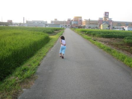 団地を抜けて田んぼの真ん中の道を散歩です。