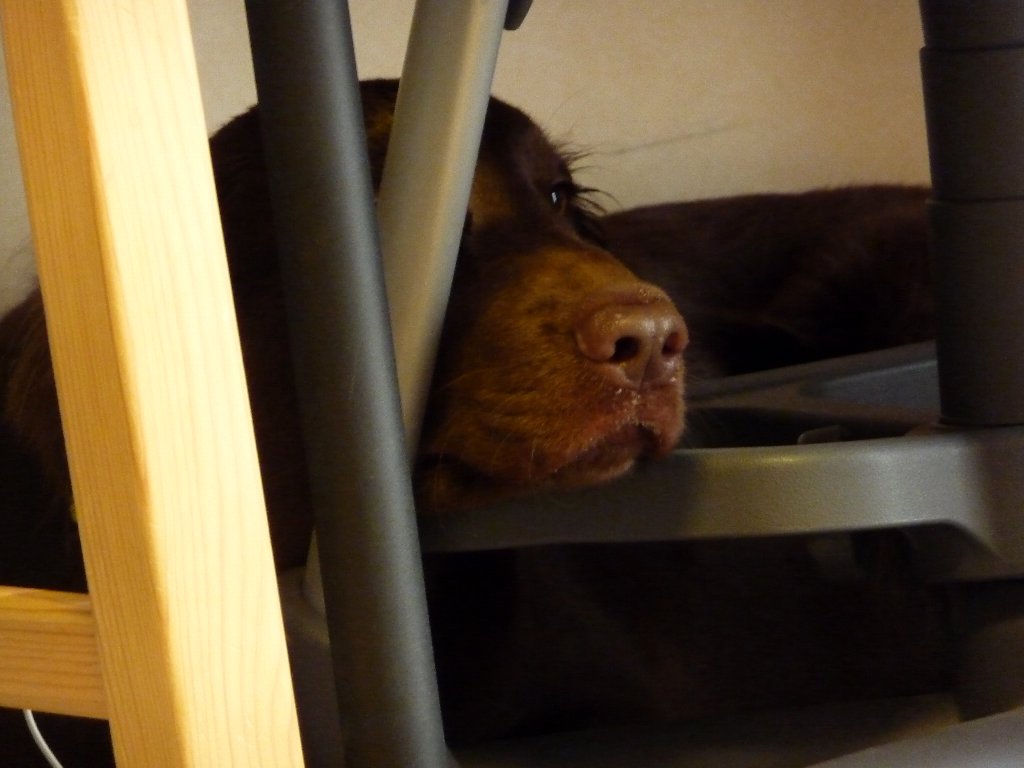 母のそばにいることも多いのだけどお誕生日に嫌いな足の裏の毛切りされて、ちょっと手をゆるめた隙に机の下に逃げ込んじゃった(^へ^;)
