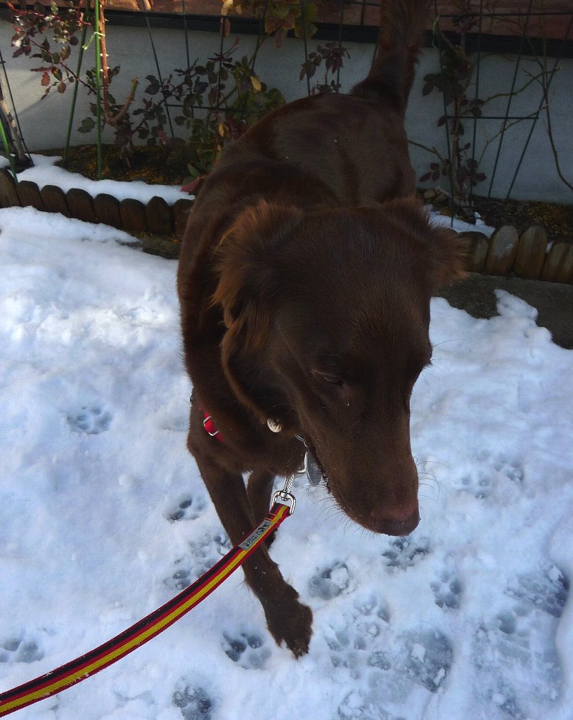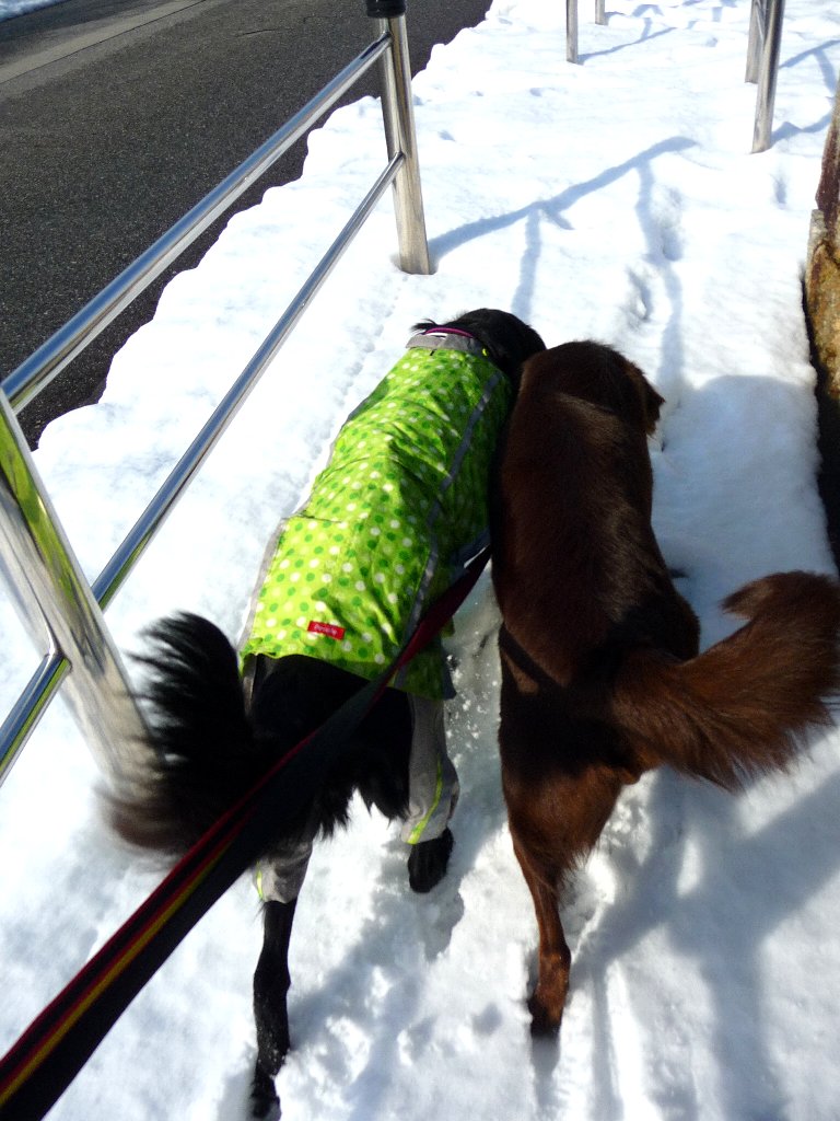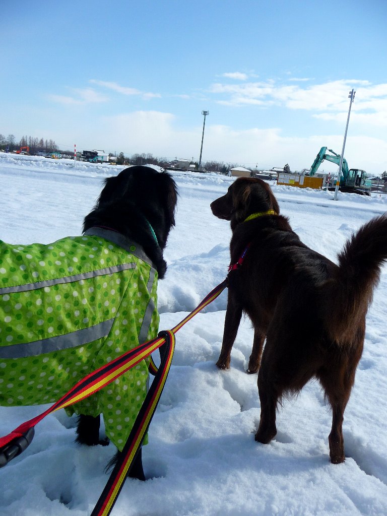 外に出るとものすごくいいお天気、雪もそこそこ残ってるのに雪原を走らせてやれないのがかわいそう、すぐそこに野っぱらあるのにねぇ~(´へ` )