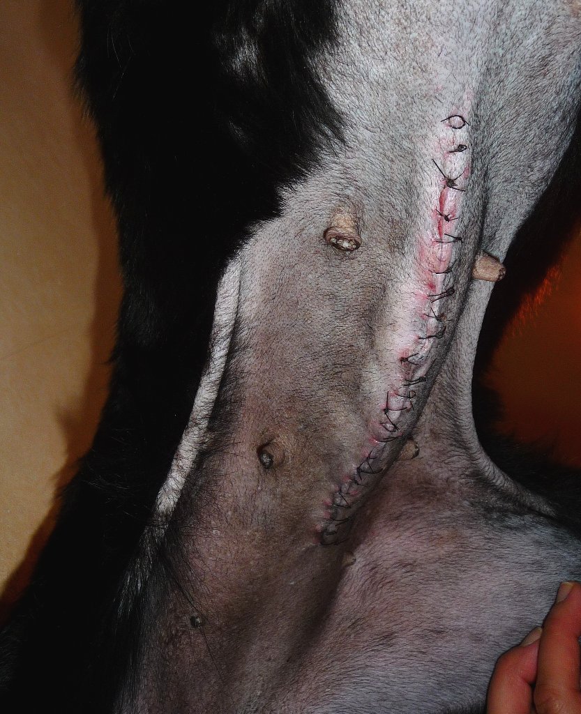 胸部の方の2ヶ所のちょっと塞がってないっぽい部分は凜の動きでちょっと傷口引っ張っちゃったのかな?4日目の写真では開いてないもの(´へ` )